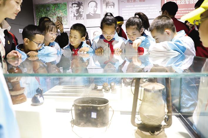 日前,赤城县委宣传部联合县教育局开展了全民国防教育月主题活动。图为学生在平北抗日根据地纪念馆参观。王怡宁 郭占江 摄