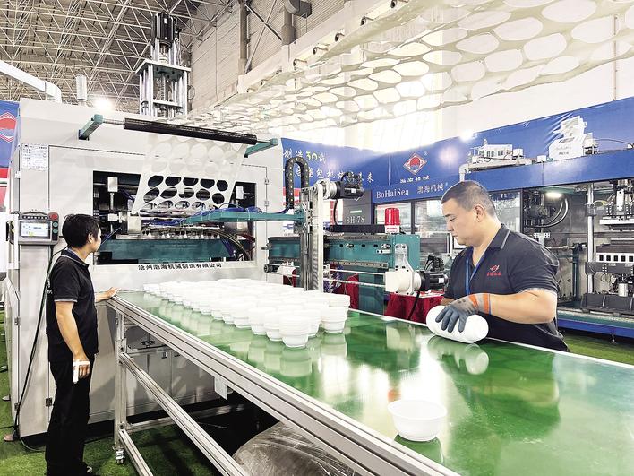 近日,2025第六届中国·沧县塑料中空制品展览会在沧州国际会展中心开幕。本届展会以“共享智造引领沧县塑包、科技赋能共创产业新篇”为主题,吸引了全国21个省份的500余家企业参展。展会汇集了塑料全产业链条的前沿技术,涵盖塑料中空制品、机械设备等5大类5000余种产品,为企业提供最新设备与技术的一站式采购平台。图为一家塑料制品企业生产车间。 长城网·冀云客户端 董肖飞 摄