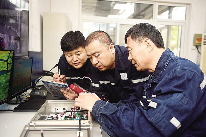 近年来,开滦集团唐山矿业公司深入实施人才强企战略和全员素质提升工程,发挥劳模创新工作室集智创新和高技能人才“传帮带”作用,常态化开展技术比武活动,培育形成了一支数量充足、梯次衔接、素质优良的人才队伍。图为开滦集团唐山矿业公司技能大师(右一)正在进行教学。庞英德 何超 摄