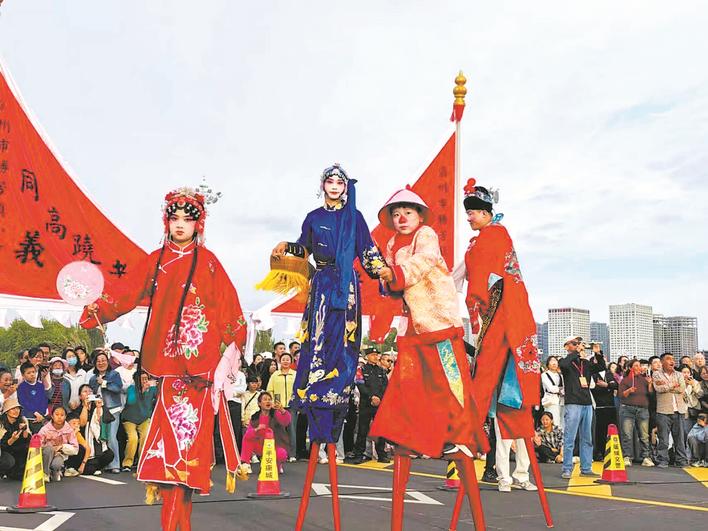 近日,在内蒙古自治区鄂尔多斯市康巴什区举办的“暖城非遗嘉年华”巡游展演活动中,来自全国各地的17支队伍同台献艺,其中,霸州市胜芳小河西同义高跷老会惊艳亮相,以其精湛的技艺成为活动现场的焦点。赵德刚 摄