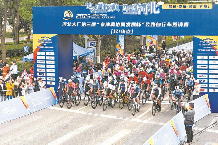 大厂回族自治县持续加大全民健身设施投入,建成覆盖城乡的“15分钟健身圈”,并成功承办多项国家级、省级赛事,全民健身氛围日益浓厚。图为大厂第三届“京津冀协同发展杯”公路自行车邀请赛现场。王绍蘅 摄