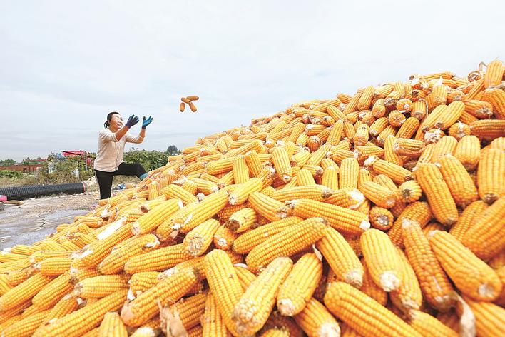 金秋时节,各地陆续进入收获季,到处洋溢着丰收的喜悦。图为丰润区丰润镇卢各庄村农民在整理收获的玉米。朱大勇 摄