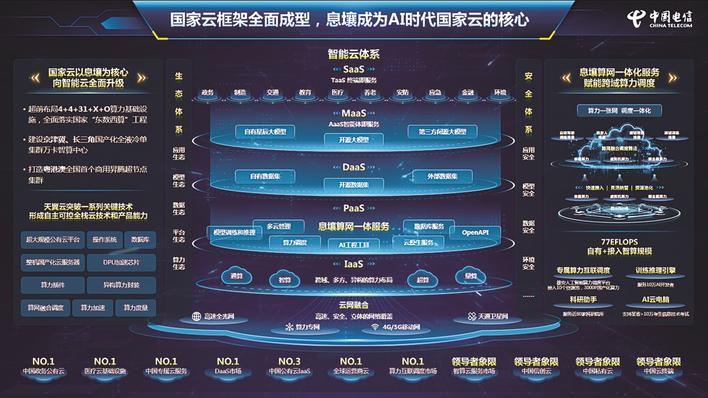 中国电信坚定践行“网是基础、云为核心”的战略理念,超前部署算力基础设施,全面融入国家“东数西算”工程布局。作为国家云的核心载体,天翼云通过整体架构升级与能力跨越,正式迈进智能云新阶段。中国电信自主研发“息壤”智能云服务体系,构建全栈智能生态,并推动“息壤”成为普惠、可信、高效的人工智能基础平台,让智能服务随处可及、随需可得。