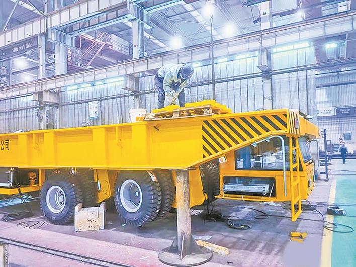 组装车间外,起重量710吨的架桥机如钢铁巨人般巍然屹立;组装车间内,矿用防爆车、船厂平板车等特种运输车正进行最后调试:这是秦皇岛天业通联重工科技有限公司(以下简称“天业通联”)传统制造业智能化变革的前沿阵地。
