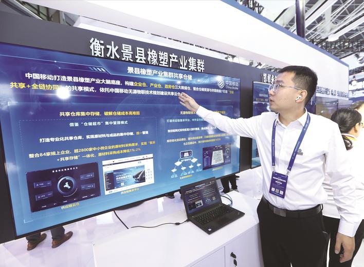 工作人员向嘉宾展示衡水景县橡塑产业集群共享仓储平台。武志库 摄