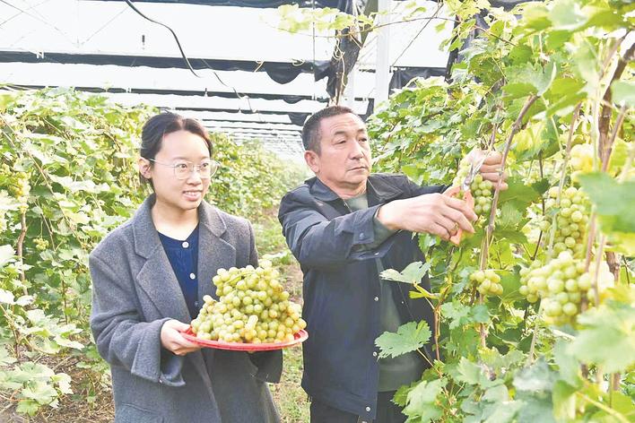 近日,广平县平固店镇东王封村120亩日光温室大棚的秋黑、克丽森葡萄迎来丰收,由于较其他品种晚1个月成熟,每公斤价格16元,销售到北京新发地市场,预计每亩纯收入达4.2万元。图为果农在采摘葡萄。刘书振 郝文河 杨海斌 摄