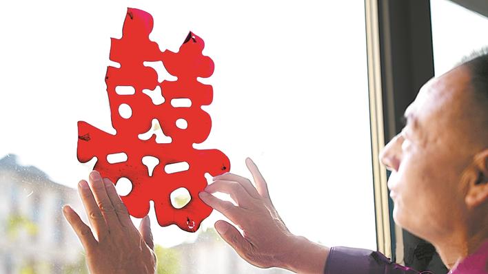 苏增良为家里贴上“喜”字。雄安媒体中心 供图