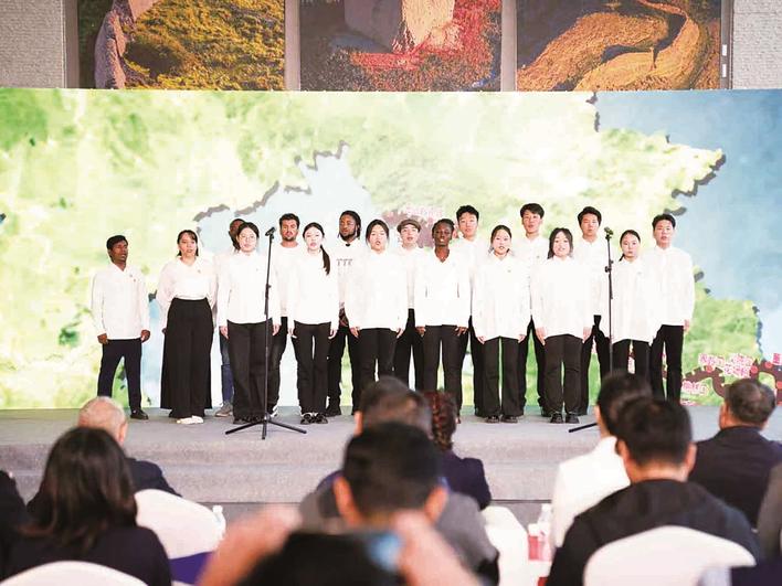 燕山大学的外国留学生与秦皇岛职业技术学院学生登台演唱《长城长》。郭政 摄