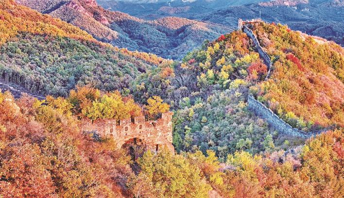 近日,秦皇岛市海港区驻操营镇董家口村周边的古长城,进入最佳观赏期。山间层林被秋意染透,红橙黄绿的彩叶错落交织,与蜿蜒伸展的古长城相互映衬,色彩交织间尽显秋意浓,构成一幅极具韵味的秋日水彩画。