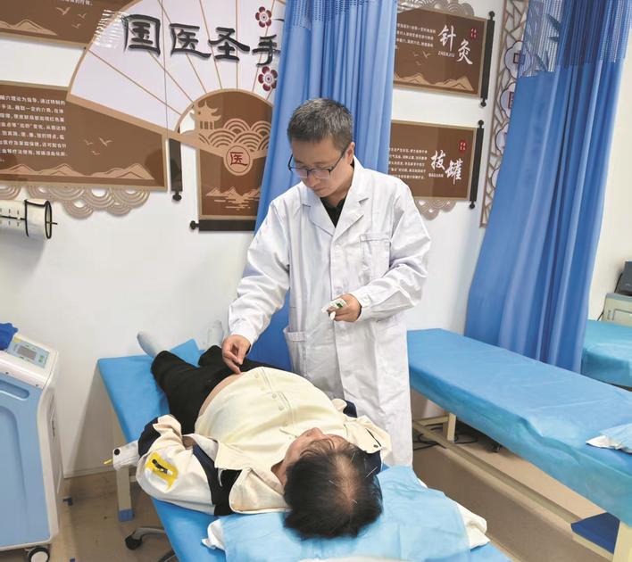 中国中医科学院针灸医院专家在涞水县中医院为病人进行针灸治疗。 王向东 摄