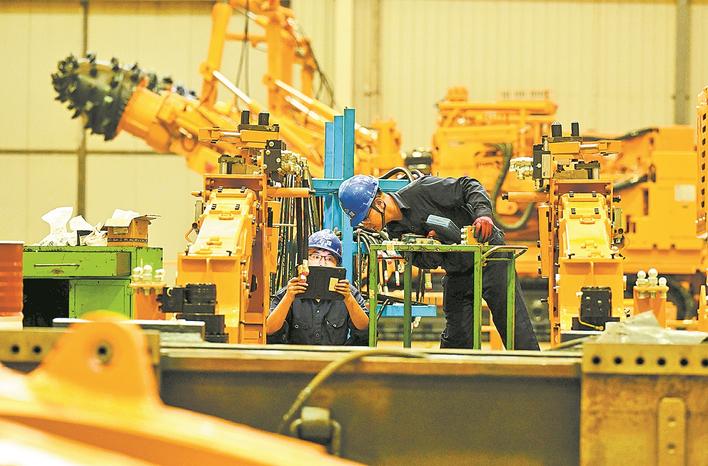在石家庄装备制造产业园,技术人员在石家庄煤矿机械有限公司装配车间组装装备。新华社发