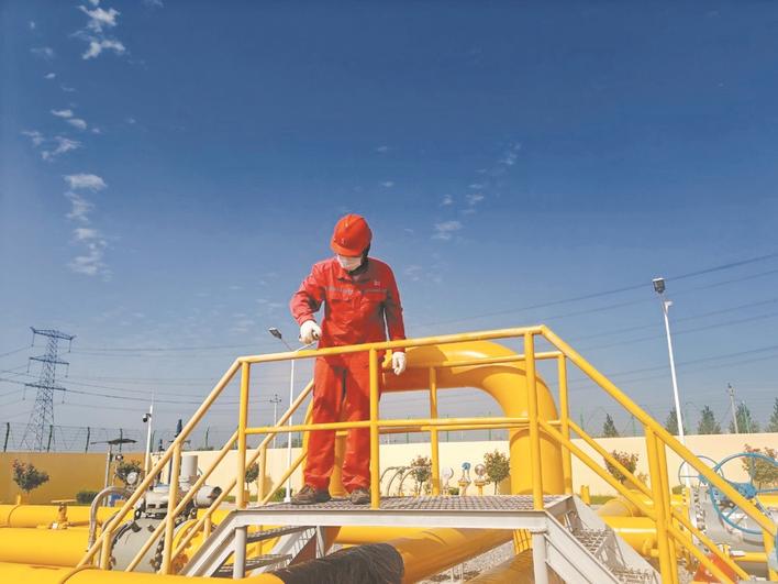 河北天然气销售中心员工做好输气场站设施维护保养工作。