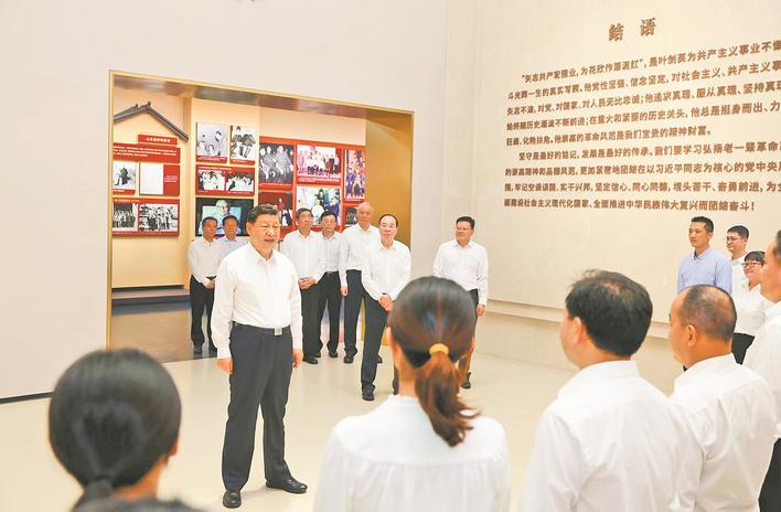 7日下午,习近平来到位于梅州市梅县区雁洋镇的叶剑英纪念园。在叶剑英纪念馆,习近平向叶剑英铜像敬献花篮,参观叶剑英生平事迹陈列。随后,又参观叶剑英故居。习近平强调,我们今天取得的伟大成就,都是建立在毛泽东等老一辈革命家打下的江山、攒下的家底之上的。要结合党史宣传教育,讲好老一辈无产阶级革命家的故事,教育引导广大干部群众特别是青少年传承红色基因、赓续红色血脉,永远听党话、跟党走。