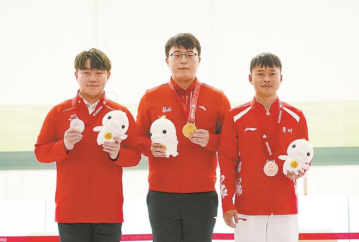 牛琪松(中)为河北代表团夺得本届全运会首金。 长城网·冀云客户端记者 韩颜 摄