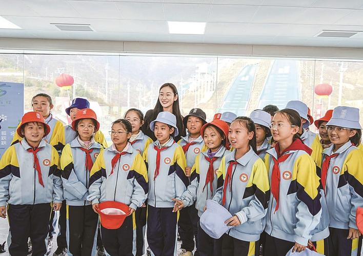11月5日,涞源县召开“雪吉祥”品牌发布会,同步举行“雪吉祥”研学基地启动仪式。活动现场,发布了“雪吉祥”品牌吉祥物。该吉祥物设计灵感来源于太行八陉之一的“飞狐陉”,结合冰雪运动,以“雪山飞狐”为原型,取名“狐跃跃”。此外,艺术体操世界冠军朱丹现场授课并巡场互动,与会嘉宾观摩跳台训练、聆听文化展廊讲解,并进行冰雪主题文创体验。图为孩子们与艺术体操世界冠军朱丹合影。
