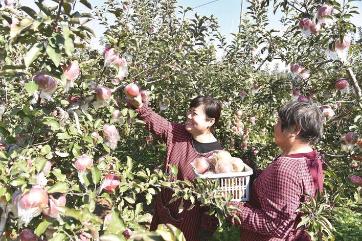 科学种植换来丰硕回报。今年基地苹果长势喜人,实测每亩产量达4000公斤。因品质优良,比普通苹果晚上市1个多月,山东、河南等地客商慕名而来,最终以每公斤4.5元的价格批量收购,每亩直接收入1.8万元,是普通苹果亩均收益的3倍,实现了经济效益与生态效益的双赢。