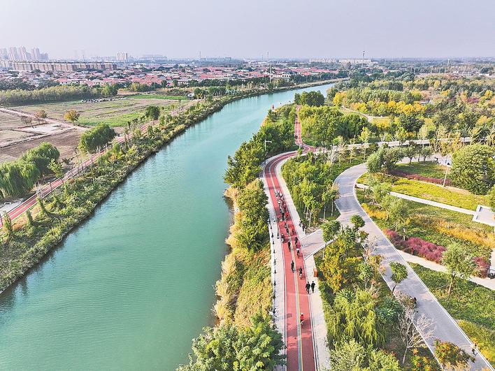 市民在沧州市运河区大运河堤顶路上骑行(10月29日摄,无人机照片)。 沧州市大运河堤顶路北起青县,南至吴桥县,全长308公里,串联起沧州市8个县(市、区)的300多个乡村。该路依大运河而建,将沿线自然景观、历史文化景点与人文景观“串珠成链”,并结合地形地貌、自然景观,因地制宜规划建设了10余个主题公园。沿途驿站、休息平台、停车位等基础设施一应俱全,形成了集观光、休闲、健身、游憩等多功能为一体的特色道路。 堤顶路的建成有效提升了大运河文化带整体效果,造福沿线200多万群众,为区域经济发展提供有力交通支撑。2024年,堤顶路获评全国“十大最美农村路”。新华社记者 牟宇 摄
