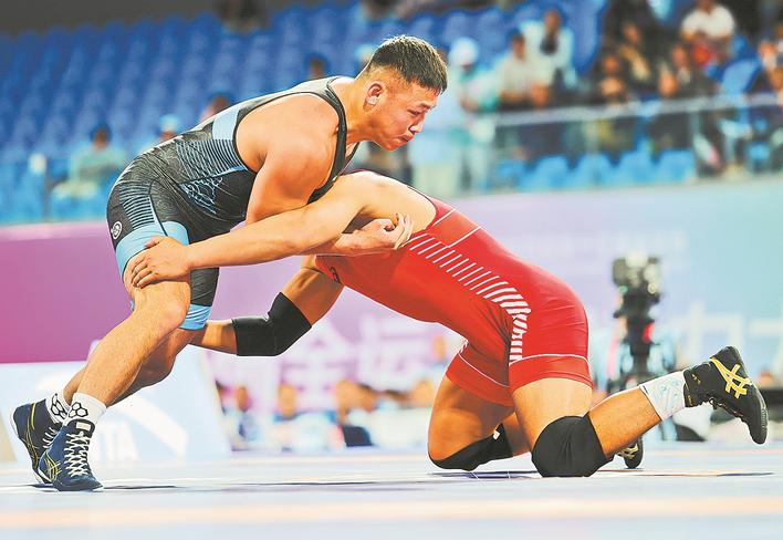 男子自由式摔跤86公斤级李培隆夺冠
