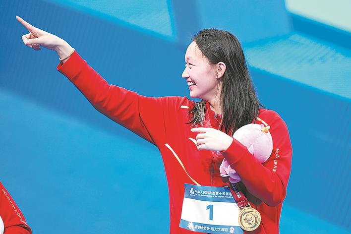 本报讯(记者白璐)11月16日,第十五届全运会游泳项目在深圳迎来倒数第二个比赛日。在女子800米自由泳比赛中,作为该项目的亚洲纪录保持者,李冰洁从一开始就遥遥领先,最终她毫无悬念地以8分19秒00的成绩夺得金牌。这不仅是她连续三届全运会夺得该项目金牌,同时也是她在本届全运会夺得的第四枚金牌。浙江选手毛奕菡获得银牌,河北运动员高唯中以8分29秒94为河北再夺一枚铜牌,马永慧和张可分别获得第4名和第8名。
