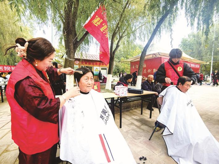 “鹿小剪”志愿者在为老年人开展义务剪发志愿服务。