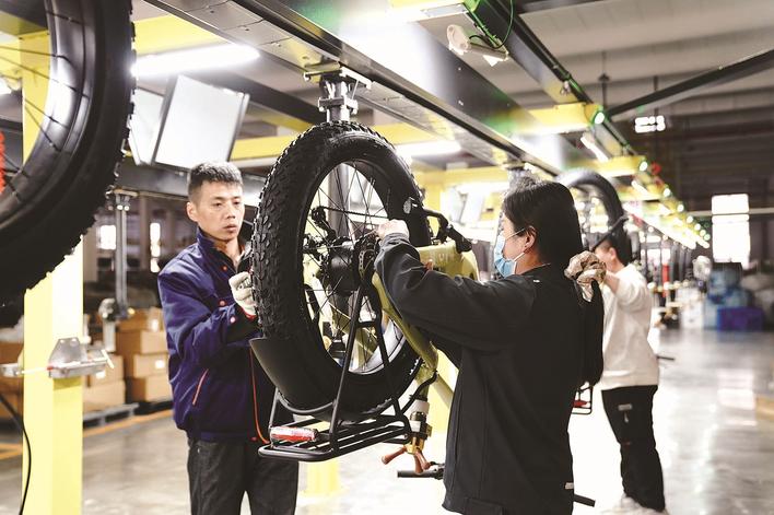 在邢台市达力斯儿童玩具有限公司生产车间,员工在加紧生产电动助力车。 李院红 摄
