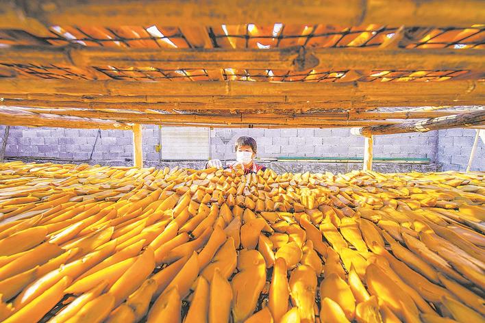 十一月十九日,遵化市新店子镇农民在庭院晾晒红薯干。