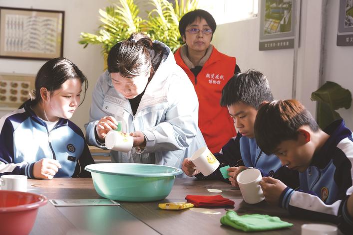 近日,唐山市第四十六中学将课堂“搬”进开平区陶瓷花纸博物馆。同学们在讲解员的带领下,参观了展馆内丰富的陶瓷作品,感受唐山作为“北方瓷都”的深厚文化底蕴。此次研学活动有助于拓宽学生们的艺术视野,激励他们做优秀传统文化的传承者和弘扬者。图为学生们体验陶瓷贴花技艺。马靖轶 江宏 摄