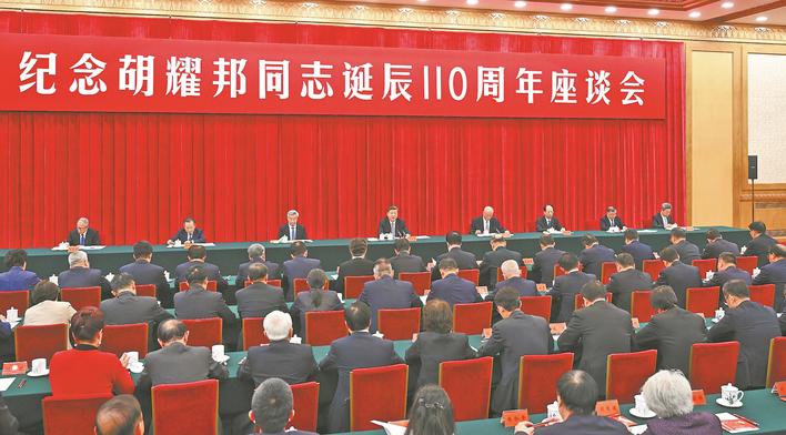 新华社北京11月20日电 中共中央20日上午在人民大会堂举行座谈会,纪念胡耀邦同志诞辰110周年。中共中央总书记、国家主席、中央军委主席习近平发表重要讲话强调,要认真学习胡耀邦同志的崇高精神风范和优良作风,不忘初心、牢记使命,坚定历史自信,增强历史主动,以一往无前的奋斗姿态扎实推进各项事业。