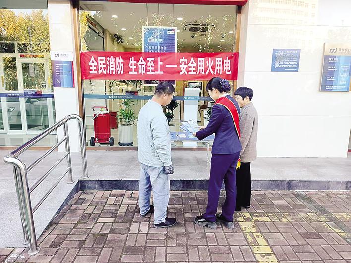 近日,浦发银行丰润支行落实开展以“全民消防 生命至上——安全用火用电”为主题的消防宣传月活动,进入周边社区以及网点阵地,以案例讲解等形式,向周边群众及来行客户普及用火用电安全知识。冯桂雄 沈阳 摄
