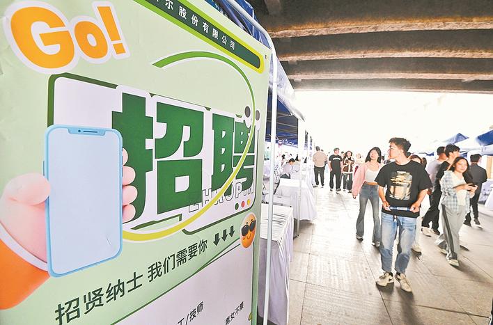 4月26日,在河北省第二届职业技能大赛的技能人才就业招聘会上,参会人员在关注工作岗位。新华社发(郝群英 摄)