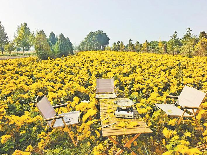 这几天,西里寨村的老乡们正忙着收菊花,他们种的是食用菊花,除了做药材,还能用来包饺子、拌凉菜、涮火锅。