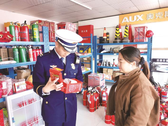 为进一步规范消防产品市场秩序,从源头遏制假冒伪劣消防产品流通,近日,沧州市消防救援支队海兴大队开展消防产品质量专项检查行动,筑牢消防安全“第一道防线”。图为检查人员通过外观比对、功能测试、扫码溯源等手段,严查消防产品。张兵 摄