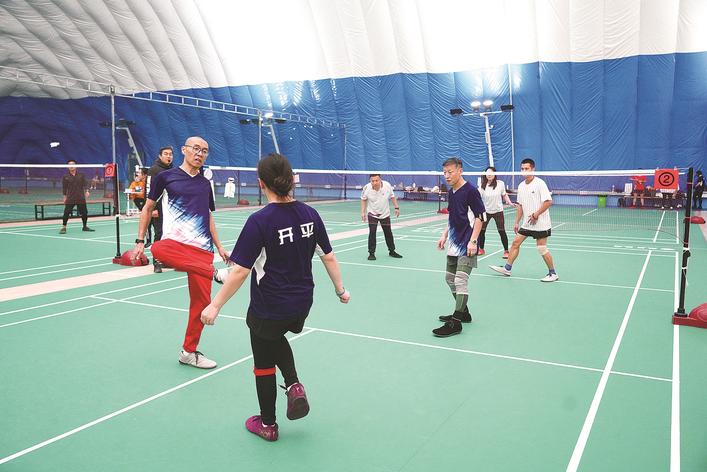 近日,2025年开平区全民健身系列第一届毽球比赛在唐山花海星球体育中心开赛,来自全区的12支队伍以毽会友,上演了一场速度与技巧、力量与美感的精彩对决。图为毽球比赛现场。马靖轶 李雪峰 摄