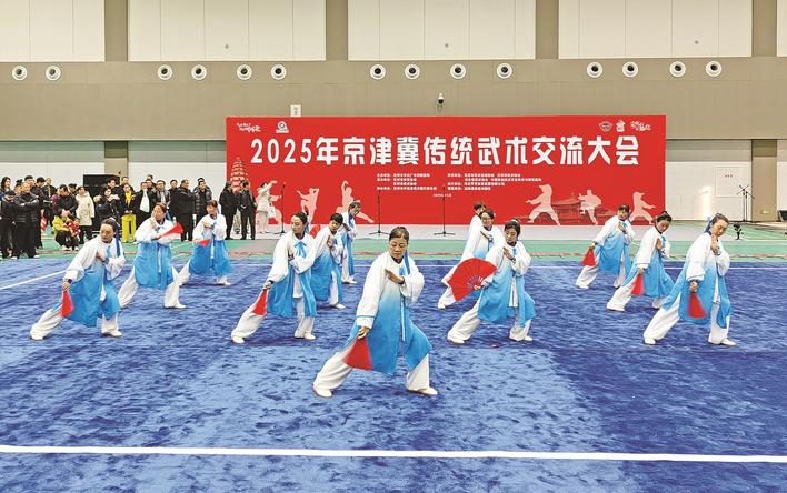 11月22日,2025年京津冀传统武术交流大会暨定州体育用品展览会在定州文体中心开幕,来自京津冀的700余名选手参赛。本次赛事立足“武术之乡”定州的文化底蕴,汇聚京津冀传统武术核心资源,为三地武者搭建了切磋技艺的平台。 本报记者 赵绅光 摄