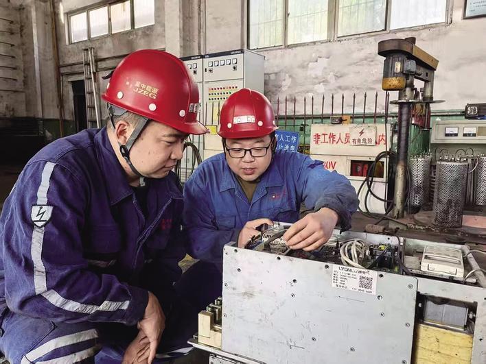 11月份以来,冀中股份葛泉矿工会持续实施“师带徒”制度,通过“传帮带”全面提升新员工的业务能力。图为该矿机修厂王栋(右)指导新员工学习468机组变频器维修工作。 岳长晖 程彦强 摄