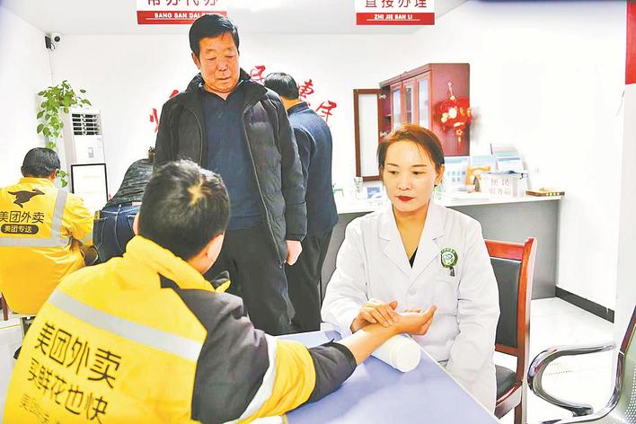 近日,广平县社会工作部牵头组织县中医医院志愿服务队义务为外卖员、快递员等新就业群体提供把脉问诊、血压测量、彩超检查、针灸理疗等中医特色服务。该部还特邀心理咨询师现场授课,疏解新就业群体的心理压力,为他们的身心健康保驾护航。刘书振 王晓静 摄