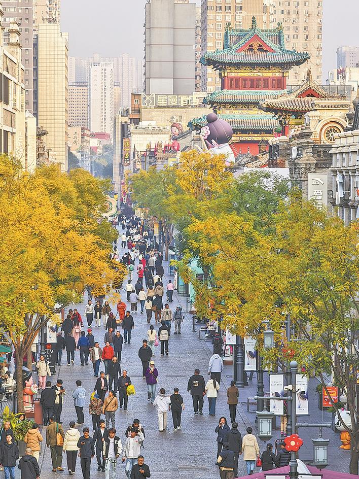 山西省太原市迎泽区的钟楼街古老钟楼与现代光影融合,百年老字号与潮牌店比邻,当历史与现实交织,传统与现代碰撞,孕育出独特而浓郁的烟火气。新华社记者 杨晨光 摄