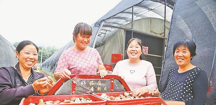 阜平县香菇种植园里的村民们开心收获香菇。记者 李佳琦 摄