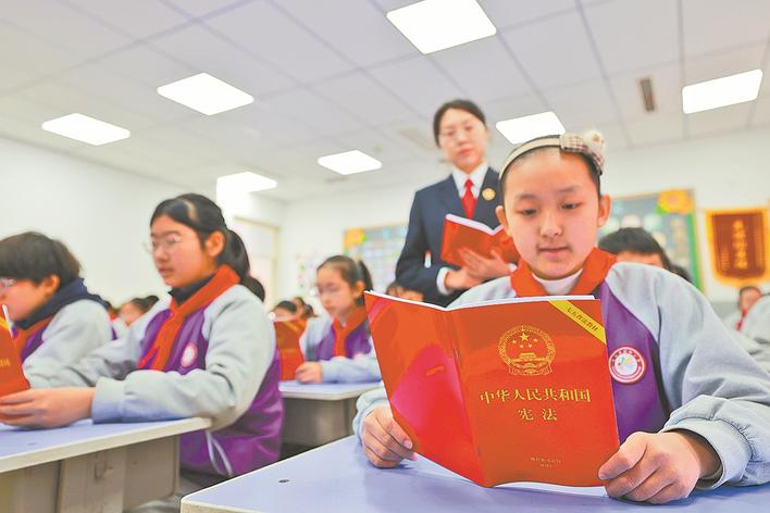 12月2日,在内丘县朝阳小学,内丘县人民检察院检察干警为学生讲解宪法知识。12月4日将迎来第十二个国家宪法日,各地开展多种形式的普法宣传。 新华社发(刘继东摄)