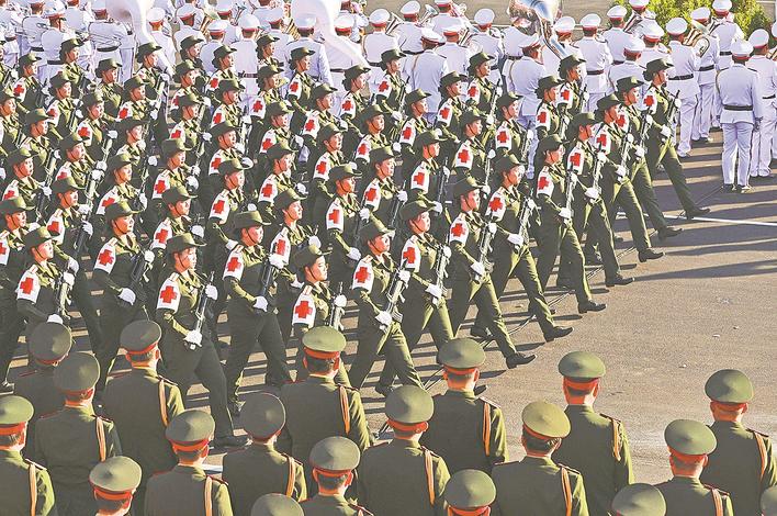 这是12月2日在老挝万象拍摄的庆祝活动现场。 老挝2日上午在首都万象塔銮广场隆重举行国庆50周年庆祝活动。1975年12月2日,老挝宣布废除君主制,成立老挝人民民主共和国。 新华社记者 姚大伟 摄