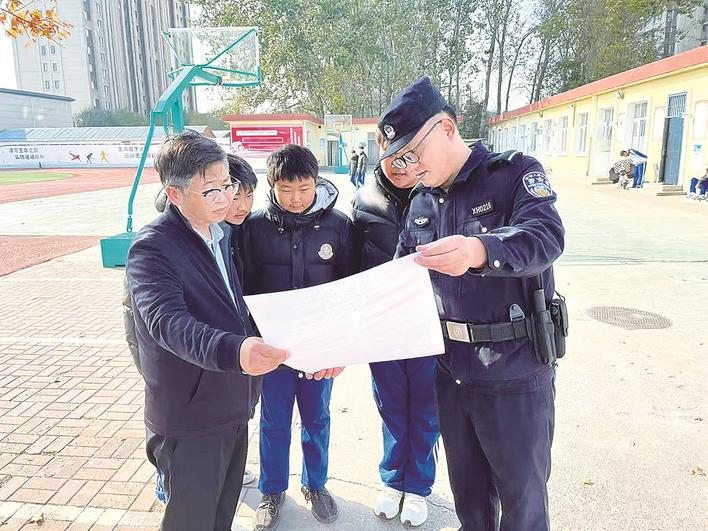 近日,香河县公安局淑阳派出所践行主动警务理念,依托灵活多样的“微恳谈”形式,与居民面对面交流,全力筑牢安全防线。图为民警与学校师生开展“微恳谈”。张嫚青 摄
