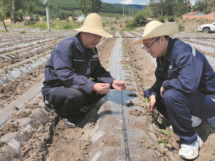 2025年6月11日,国网围场供电公司驻村工作队帮助定点帮扶村丰富沟村引进红薯秧苗,并指导栽培。刘春学 摄