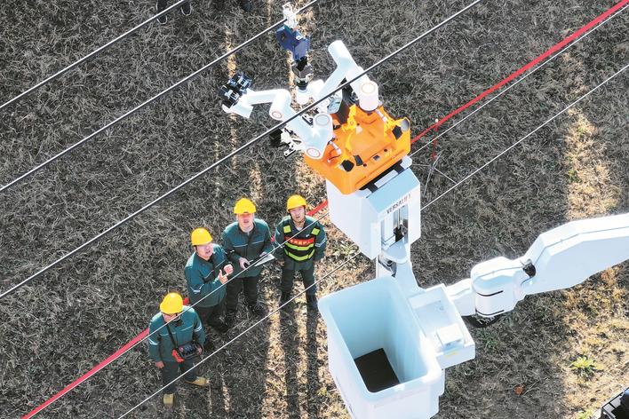 11月14日,国网河北电力、国网邢台供电公司首次应用智能带电作业机器人协助完成配网复杂带电作业,实现了带电作业机器人在国网河北电力配网作业的新突破。今年以来,邢台供电公司共实施配网不停电作业8194次,减少167万停电时户数,全面提升供电可靠性。甄红芳 成博浩 摄
