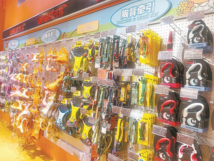 在石家庄市长安区火星宠物超市,从牵引绳、胸背产品到服装、玩具,再到外出包、手推车,大大小小的宠物用品琳琅满目。以牵引绳为例,根据品牌、产地、功能不同,价位在20—400元不等。宠物服装的价位则在百元上下,覆盖了棉服、四脚衣、口水巾等多个品类。