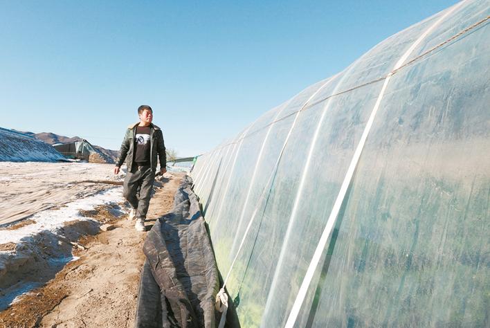 许宝茹每天都要围绕大棚走上几圈,检查棚膜是否完整。记者 袁立朋 摄