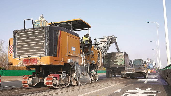 为进一步优化道路通行环境,提升市民出行体验,连日来,石家庄市道桥设施管护中心对三环路设施开展全面维修作业,全力解决突出病害问题,守护市民出行安全。 据了解,由于三环路车流量大,为降低对市民出行的影响,此次采取半封闭交通方案进行维修,同时做好安全警示等各项措施。图为铣刨机在移动雾炮车的协同配合下,对病害路面进行铣刨作业。本报记者 张超 摄