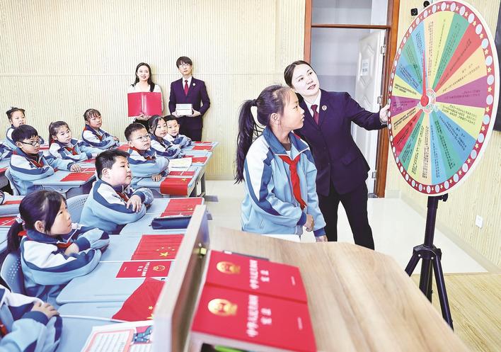 12月3日,秦皇岛市海港区南岭路小学联合海港区人民检察院、海港区团委,开展了“宪法宣传进校园”主题活动。检察干警走进南岭路小学,通过知识讲解与趣味互动相结合的方式,为学生们普及宪法知识。曹建雄 摄