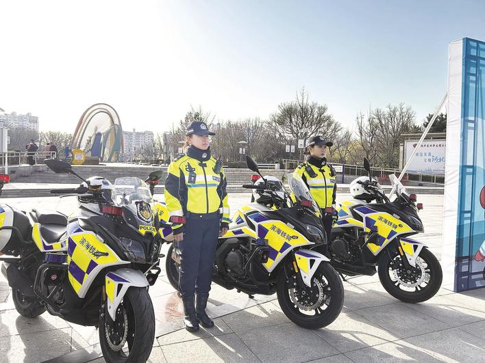 近日,在第14个“全国交通安全日”到来之际,秦皇岛市公安局交通警察支队在森林体育公园广场举办了一场形式新颖、互动性强的交通安全主题宣传活动。活动围绕“文明交通,礼行天下”主题,通过“宣讲+服务+体验”三位一体模式,积极营造全社会共同关注交通安全的浓厚氛围。图为滨海铁骑女骑警展示。祖迪 摄