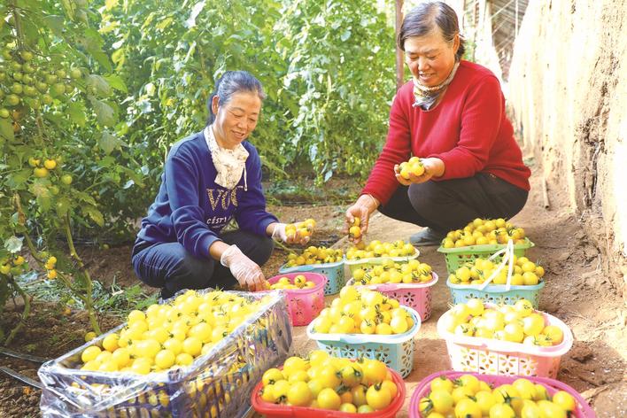 近年来,平泉市认真实施乡村振兴战略,通过产业结构调整,加大科技培训力度,大力发展食用菌、设施菜、林果等农业种植产业,采取“公司+合作社+农户”模式,促进农民致富增收。图为道虎沟乡农民正在温室棚内采摘、挑选小番茄。 李平文 摄