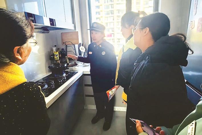 消防员为居民讲解消防知识。牛思凡 摄